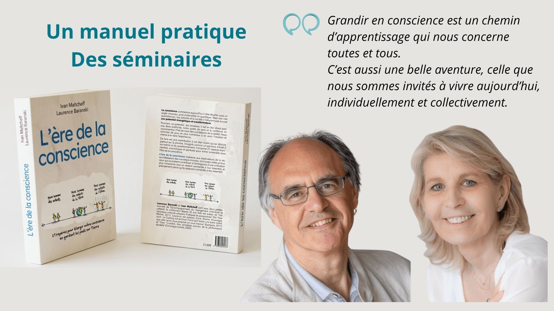 Le livre "L'ère de la conscience", que nous avons publié en 2025, reprend les 21 repères expérientiels, scientifiques et spirituels qui constituent le fil conducteur de ces séminaires.